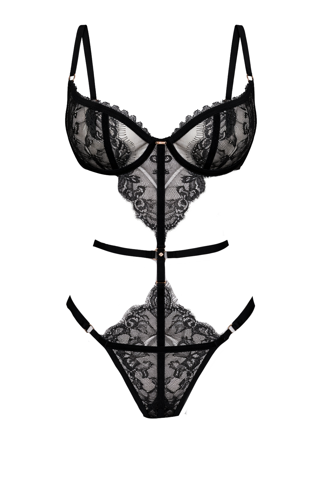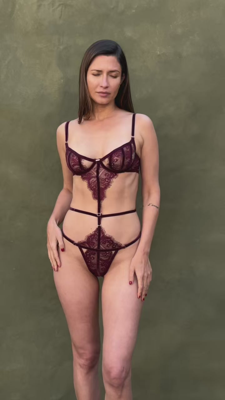 The Adeline bodysuit in black floral lace stands out for its delicate design and feminine structure. With demi-cup cups crafted from high-quality lace and adjustable straps, it offers a comfortable fit that elegantly enhances the silhouette. Its detachable front closure makes it a versatile piece, ideal for wearing as a bodysuit or bra, depending on the occasion.