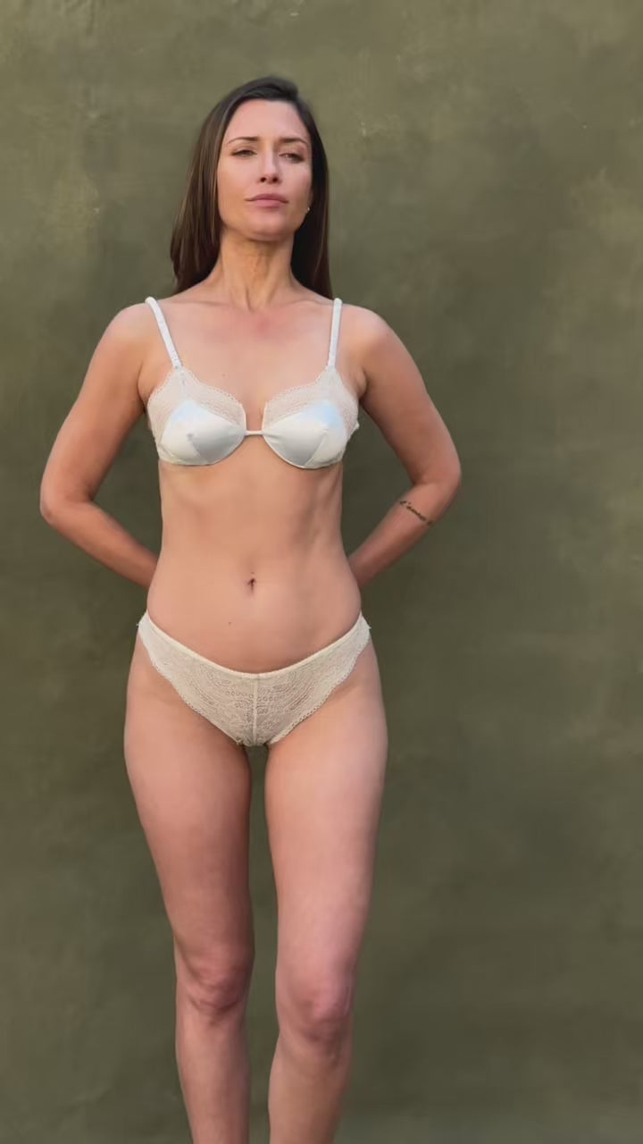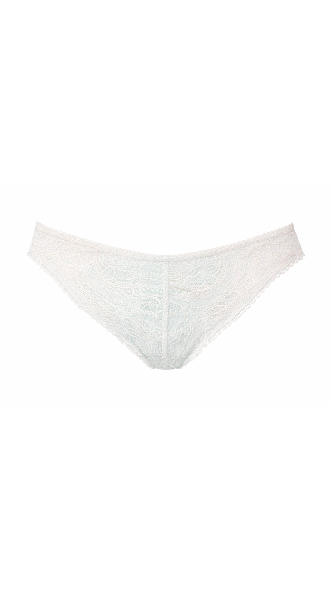 The Clarissa thong in mint floral lace envelops the silhouette with a fresh and delicate feel. Made entirely of floral cutout lace, it offers a soft and comfortable feel, ideal for those seeking feminine lingerie with a contemporary touch.