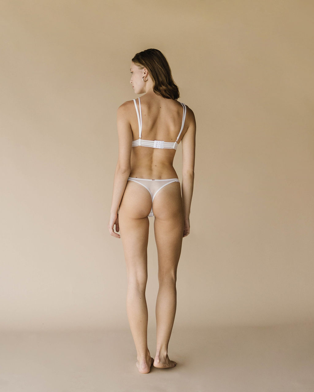 The "Lya" thong is made entirely of stretchy mesh, making it incredibly comfortable. It features delicate lace details on the front, adding a touch of elegance to its design. Pair it perfectly with the "Lya" bra for a coordinated set.