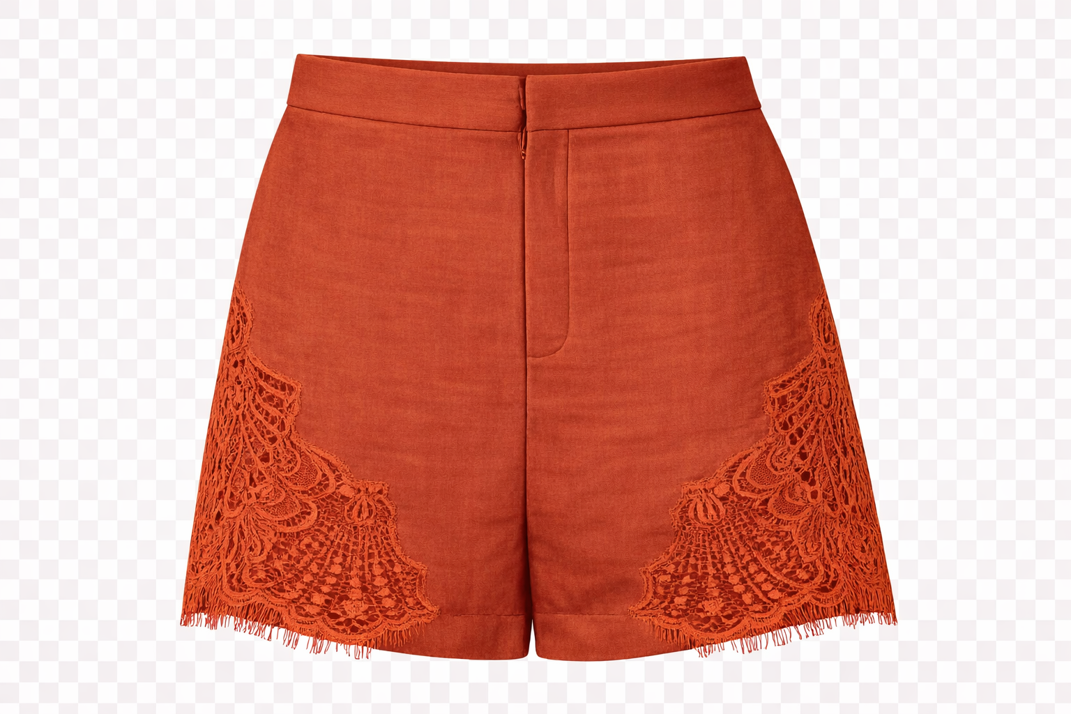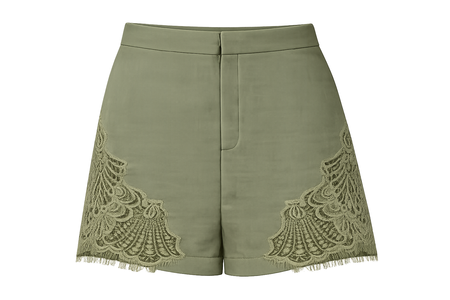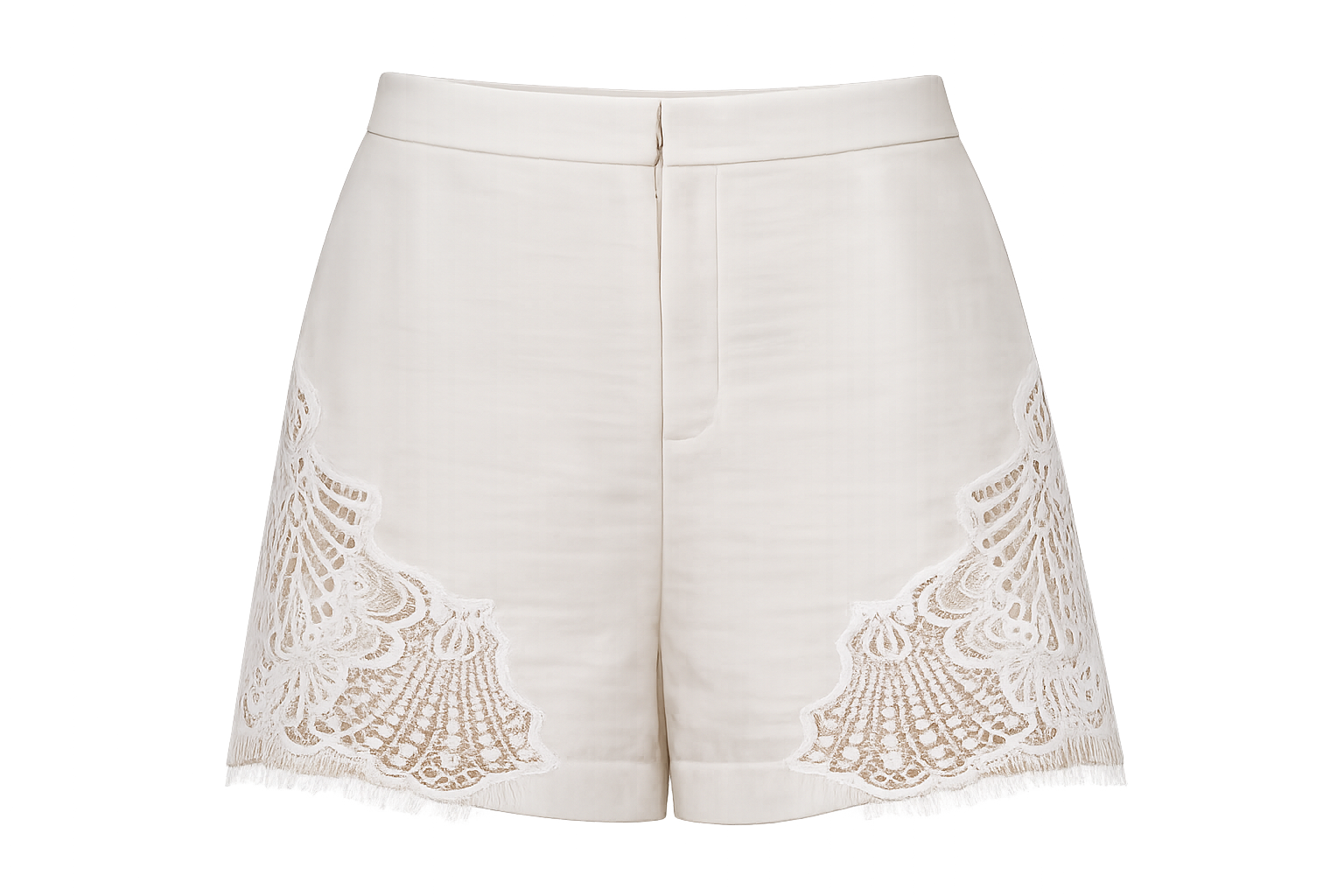 Dressy linen shorts in an ivory tone, with side lace appliqués. They feature a front zip and button closure, as well as elastic at the back for added comfort. An elegant design that combines structure and softness, ideal for a sophisticated and radiant look.