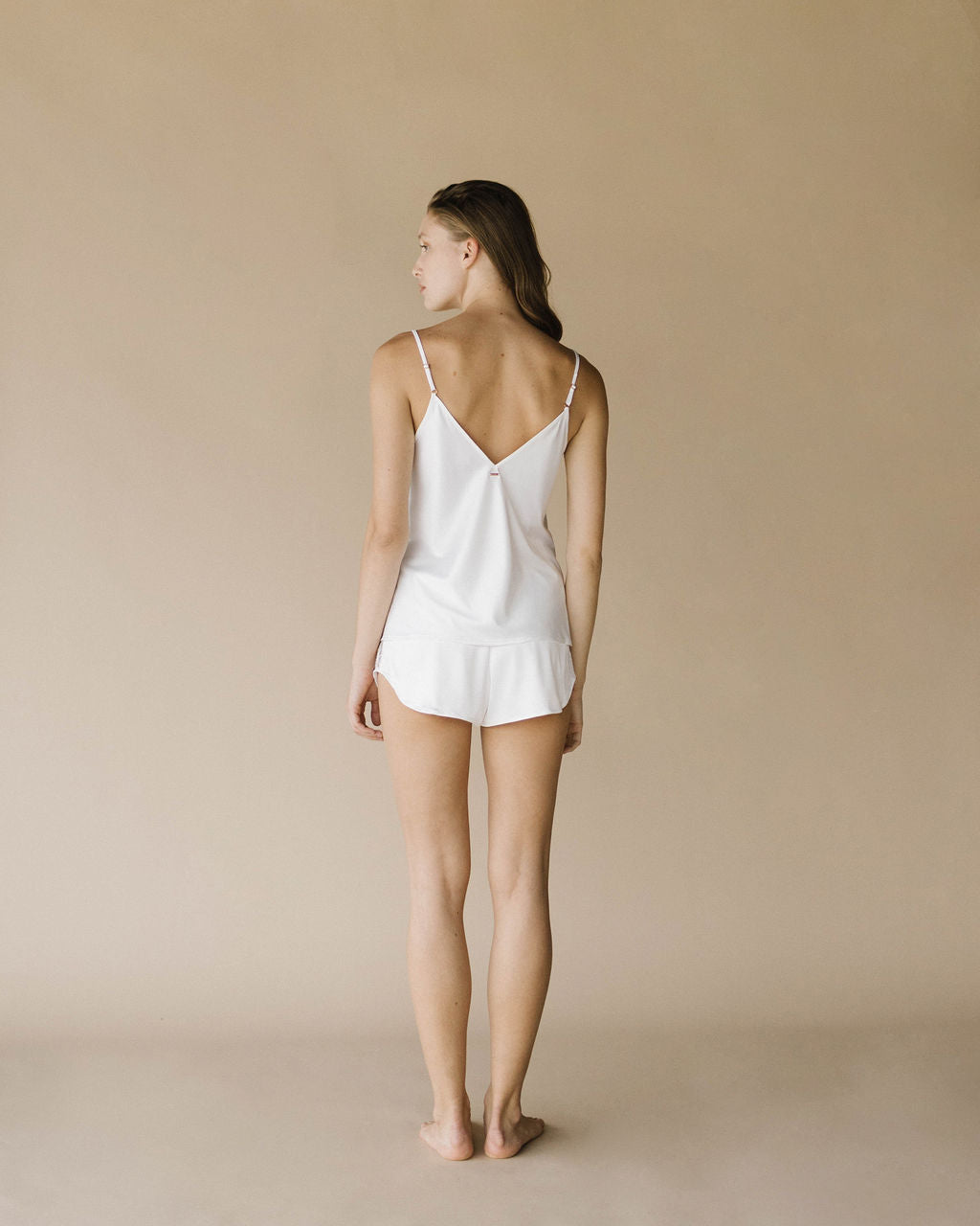 The 'Soie' shorts – crafted from soft, stretchy satin – offer comfort with an elasticated waistband. Delicate Chantilly lace details at the sides add a touch of elegance and sheerness to your pajamas. Pair them perfectly with our tops to create the perfect set.